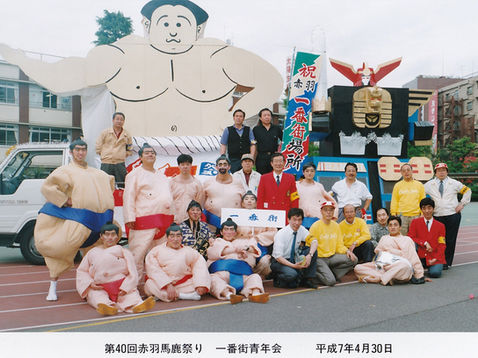 初回の馬鹿祭りは、扮装した商店主達が銀座、上野、川口方面にトラックで移動し夫々の町を練り歩いて「馬鹿祭り」を宣伝しました。